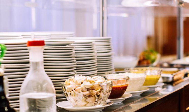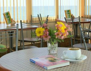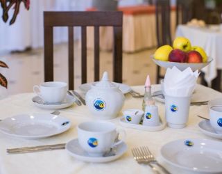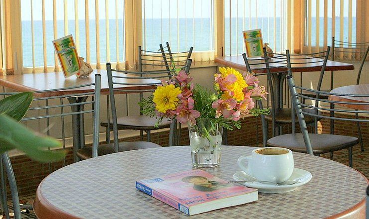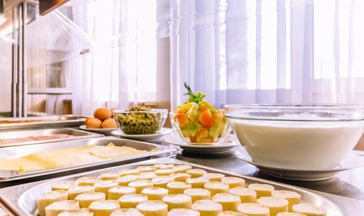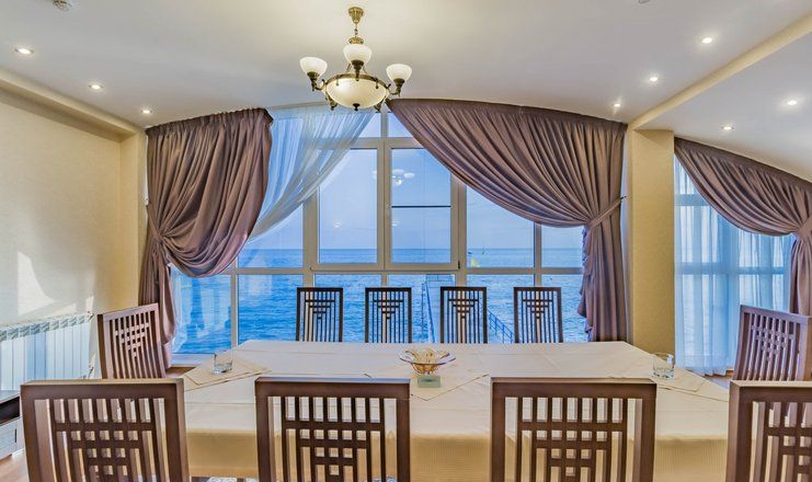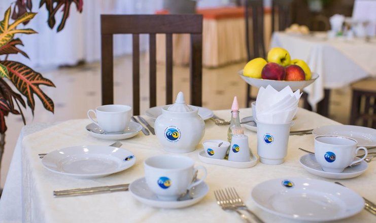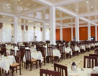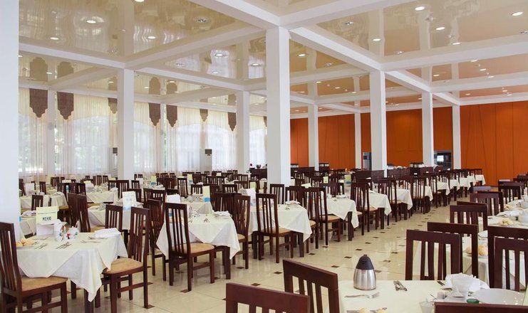 Питание в санатории имени Фрунзе – трехразовое: по меню можно выбрать любимые блюда, приготовленные опытными поварами. К услугам отдыхающих – два обеденных зала в основном ресторане, большой и малый.