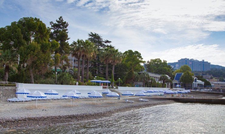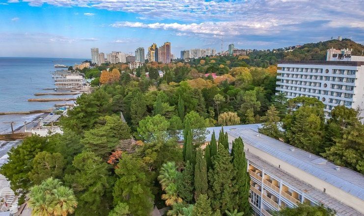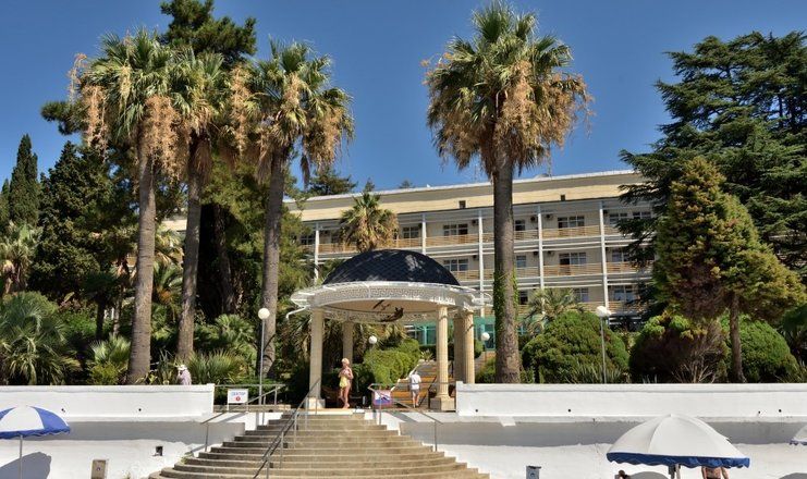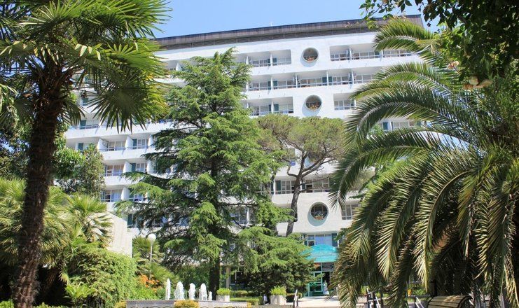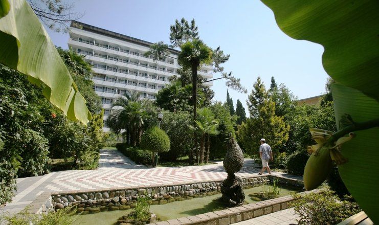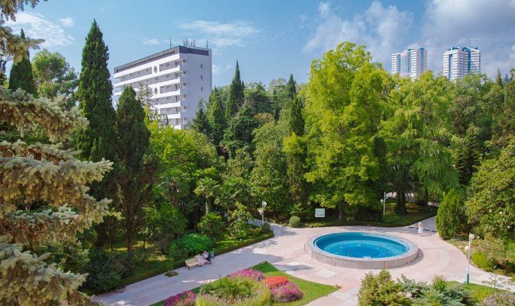 Эта круглогодичная здравница в самом центре Сочи занимает 6,5 гектаров. К санаторию относятся два спальных, клубный и лечебный корпуса. Расположены они в парковой зоне, в окружении фонтанов и цветников. До поездов отсюда – 5 километров, до самолетов – 25, а черноморский пляж – всего в 150 метрах.