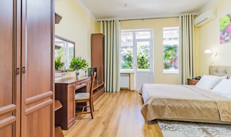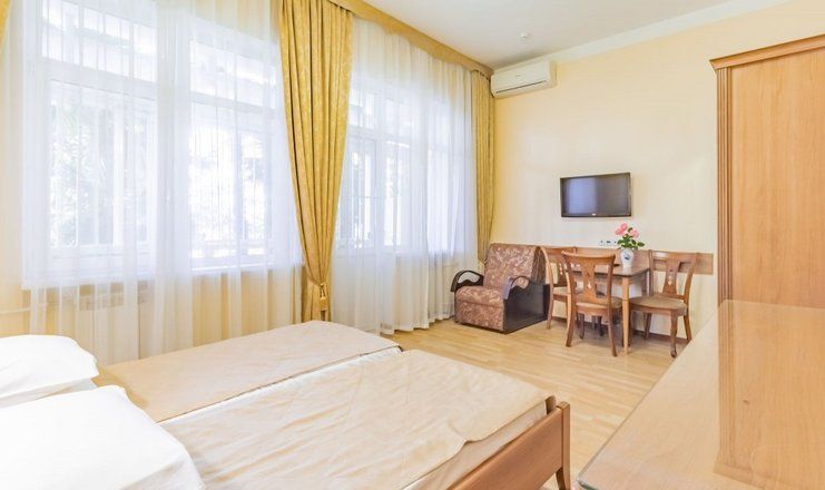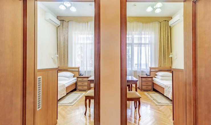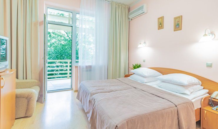 Отличный санаторий! Приезжаем каждую весну 4 год. Большая , очень ухоженная территория , набережная. Современные чистые номера. В люксах смена белья каждый день , стандарт раз в 3 дня ( были в другом санатории - так там в люксе меняли раз в неделю.) В люксе приветственные фрукты и цветы , миниральная вода , чай, кофе , конфеты, сливки ( холодильник нормального размера ) шампанское , мороженное , клубнику все можно положить. Уборка каждый день , чистота идеальная ( даже на балконе не в сезон)горничные 5+ . Лечебная база отличная , просторный корпус , в коридорах свободно , есть где комфортно присесть в ожидании процедур.( хотя и очередей то нет). Один только жирный минус - перестали делать капельницы , но я очень надеюсь что это лечение вернётся ( хотя бы и за отдельную плату) и расширится