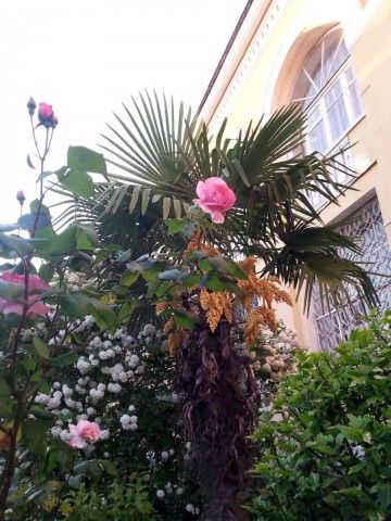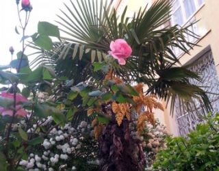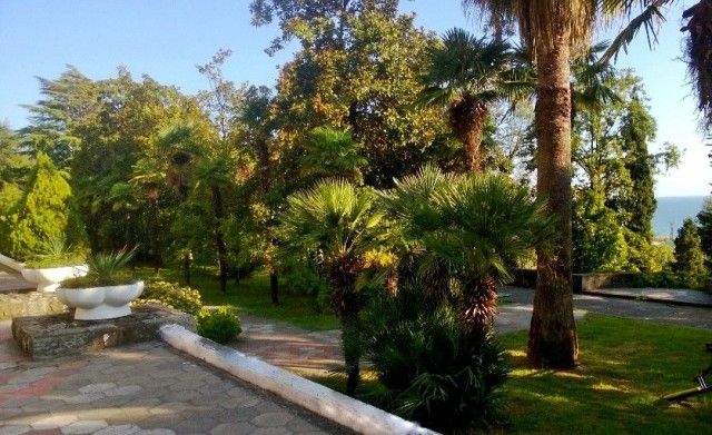 Ландшафтное озеленение территории — это старый парк с пальмами, кипарисами, гималайскими кедрами, олеандрами, магнолиями, которые потрясающе смотрятся на фоне закатного неба и моря в любое время года. В небольшой рощице с посадками пицундской сосны прохладно даже в самый знойный летний полдень.