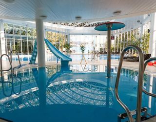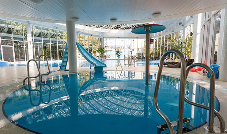 Полное санаторно-курортное лечение назначается детям с 5 лет в сопровождении родителей. В санатории позаботились о воспитателе для ребят, детской анимации, хорошо оснащенной игровой комнате и детской площадке, горке и водных аттракционах.