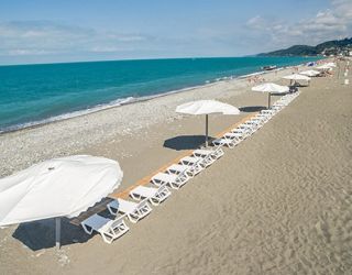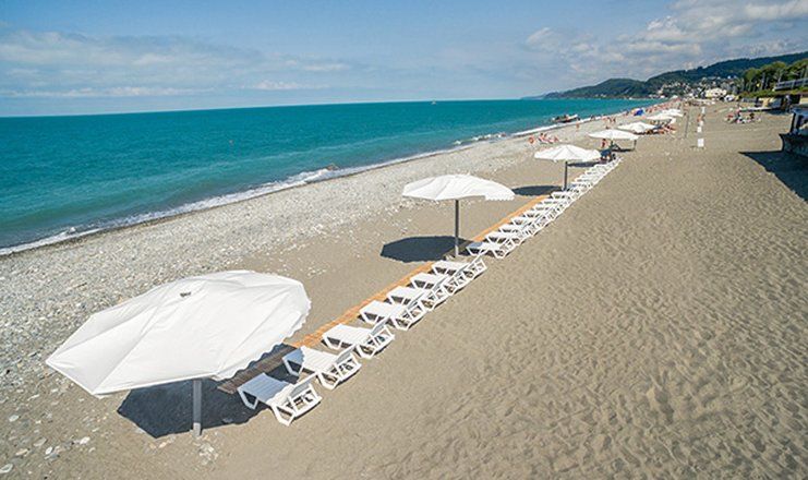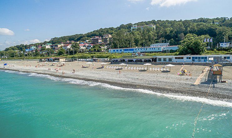 Преимущество санатория «Магадан» в Сочи – 300 метров собственного галечного пляжа с широкой галечной полосой 50 метров. Пройти к морю можно от центрального корпуса через парк здравницы, это пять минут пешком. По территории санатория курсирует микроавтобус, который подвозит гостей к автобусной остановке рядом с КПП 2, далее гости переходят через мост и спускаются к пляжу. Пляж оборудован всем необходимым для отдыха.