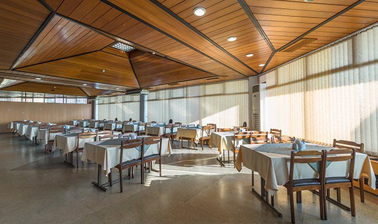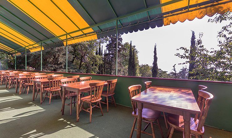 Отдыхающим предоставляются комфортные кондиционированные номера в современном девятиэтажном корпусе. В санаторной столовой подают завтраки, обеды и ужины с возможностью выбрать диетическое питание. К услугам приезжих – пляжное кафе, а также кафе и фито-бар в отдельных корпусах.