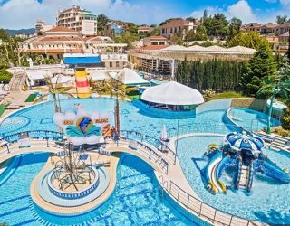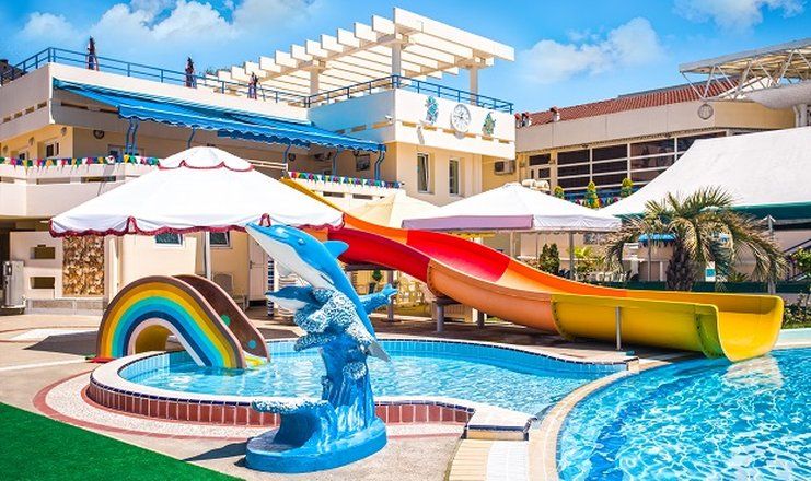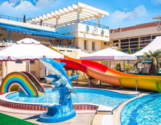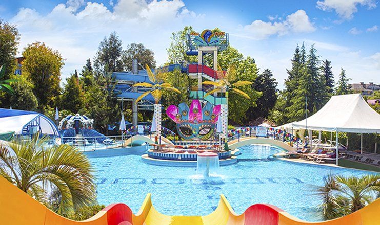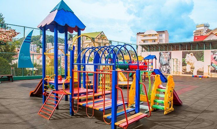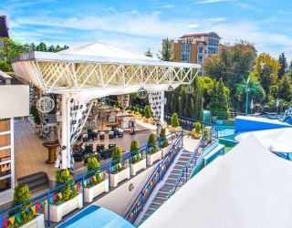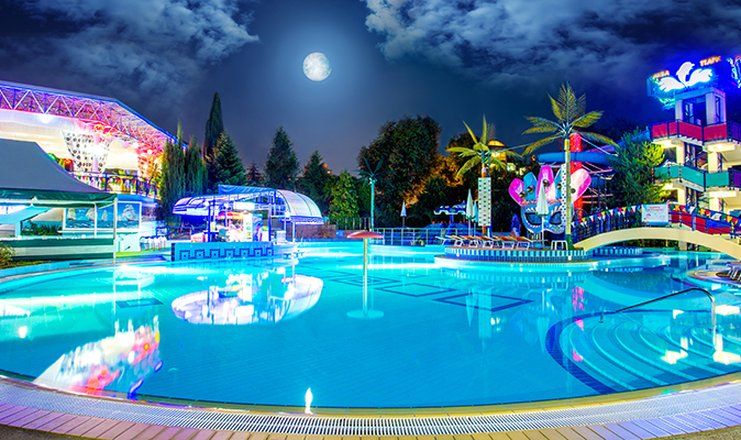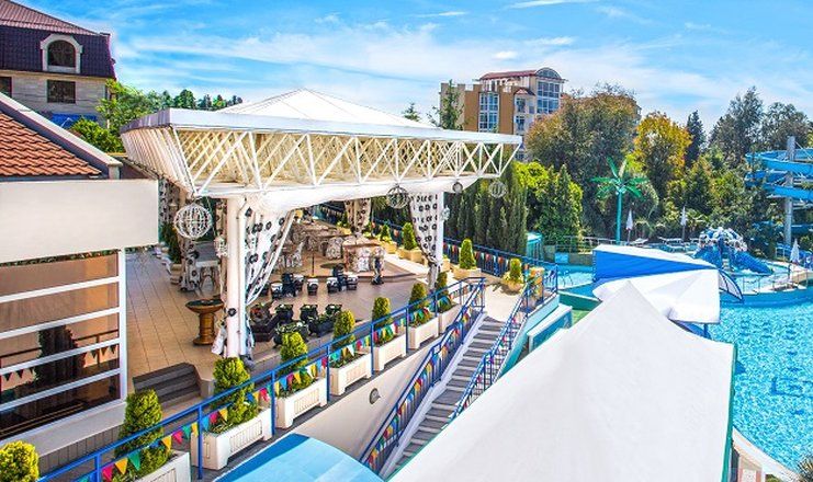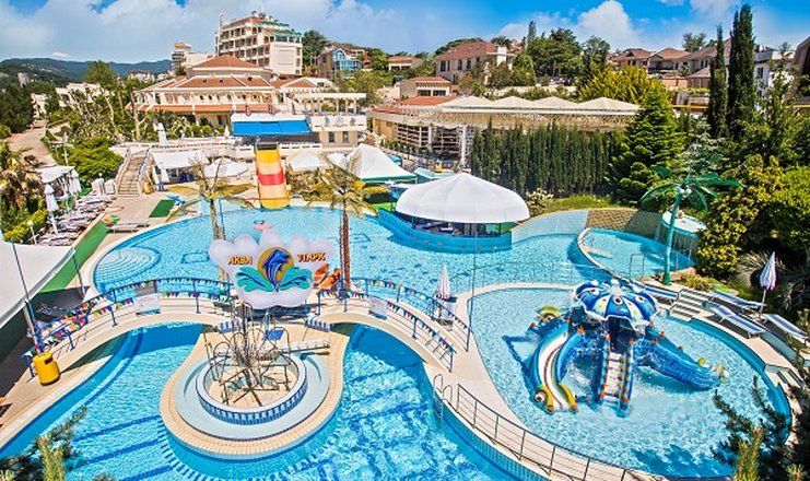 Гостям доступна большая программа водных развлечений – как на море (пляж галечный, собственный), так и в летнем аквапарке с детскими и взрослыми горками, или в подогреваемом крытом бассейне с отделением для деток.
