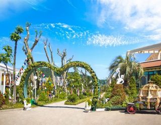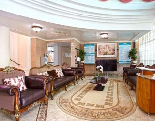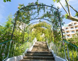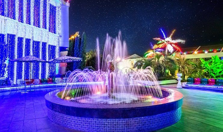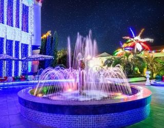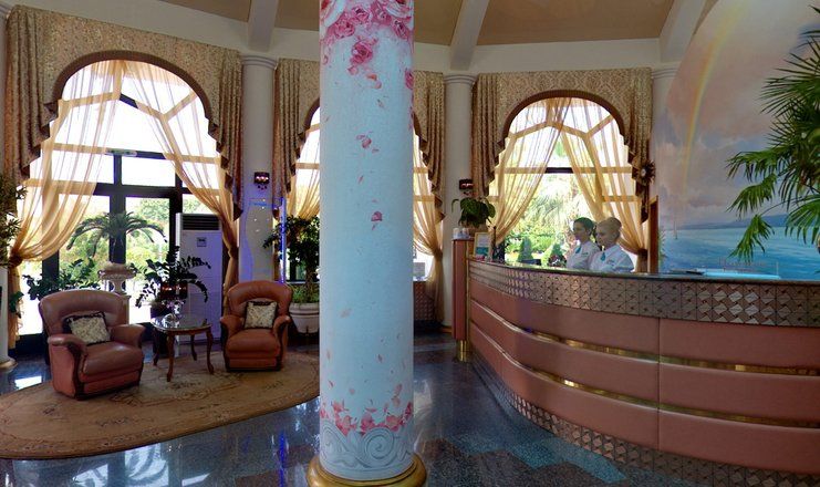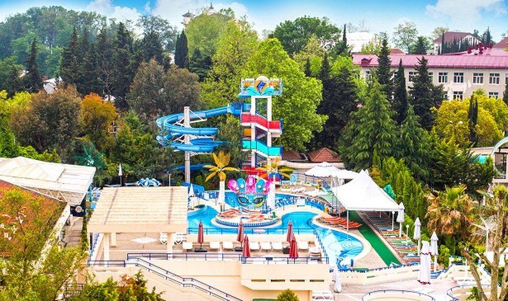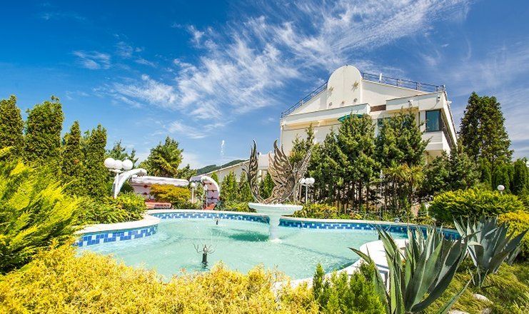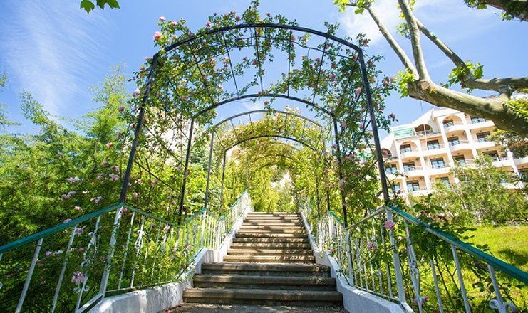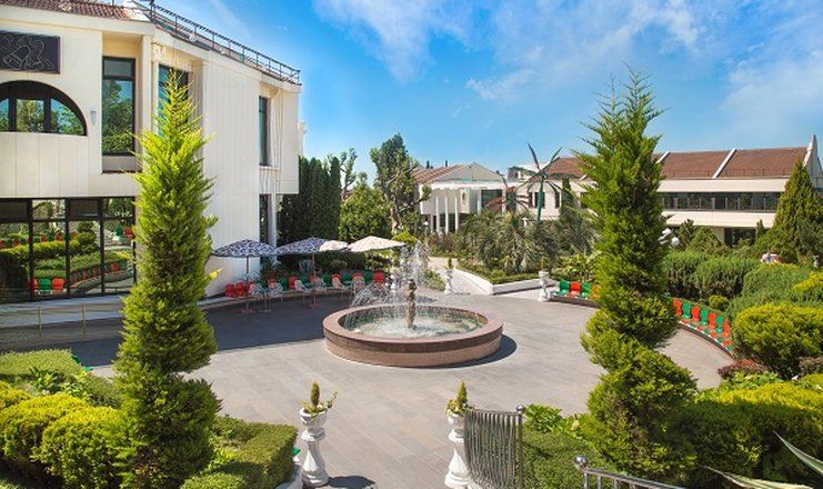 Санаторий, окруженный пальмами, кактусами, кипарисами и магнолиями, которые в сочетании с красивыми фонтанами создают великолепную атмосферу для прекрасного настроения.