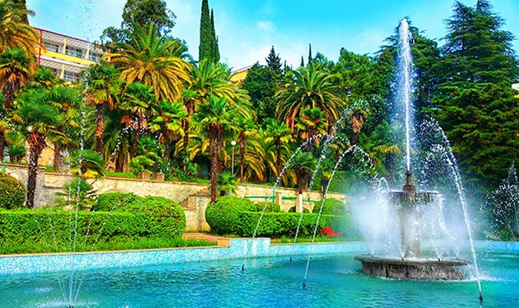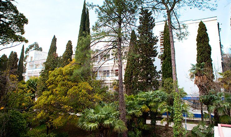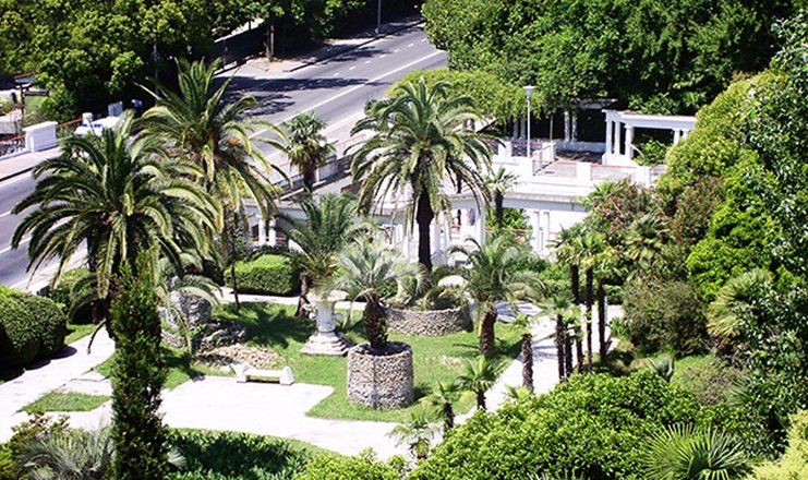 Огромная территория военного санатория «Сочинский» площадью в 26 га, находящаяся в дендропарке, спускается к морю террасами и полна массы приятных уголков, аллей, переходов. Роскошная субтропическая растительность, покрывающая её, в сочетании с горно-морским воздухом целительна сама по себе.