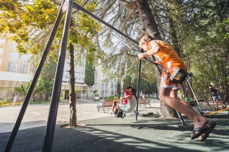 Поездом до ж/д вокзала Сочи, далее автобусом № 551, 552, 105с до остановки «Светлана, далее пройти 200 м до санатория.