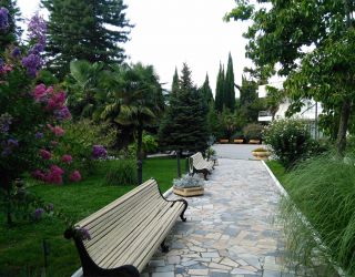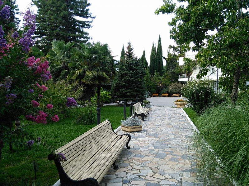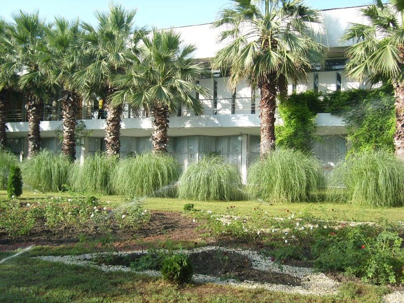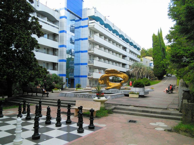 Прекрасный климат и большой парк-дендрарий на территории санатория! Погода в ноябре 18-19 градусов. Парк поразил даже в ноябре! Это хвойные: кипарисы, сосны, туи, а также пальмы, бананы, бамбук лавровишня, огромная американская секвойя! Большое количество редких растений. Есть площадки для большого тенниса, волейбола, баскетбола, бильярд. Лечебный корпус хорошо оснащен.