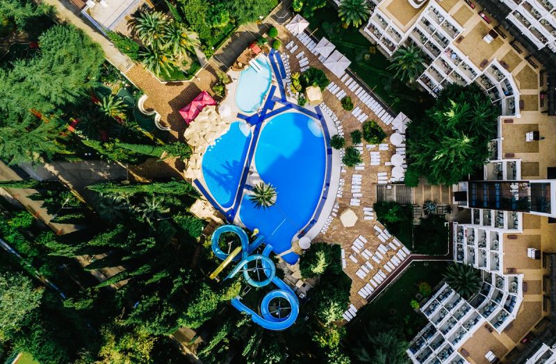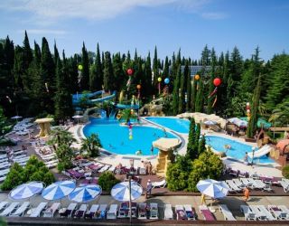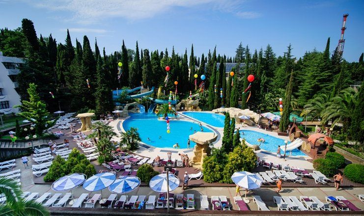 - пользование открытыми бассейнами с мини-аквапарком (в период с мая по октябрь; функционирование открытых бассейнов в летний период может быть скорректировано Администрацией санатория)