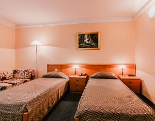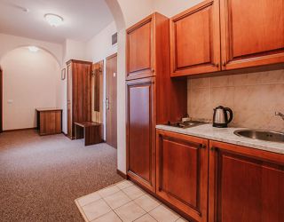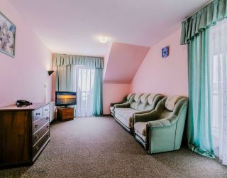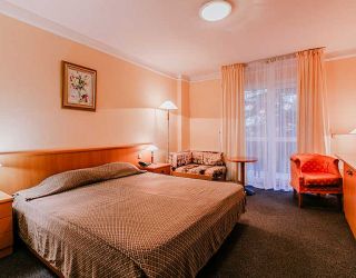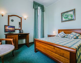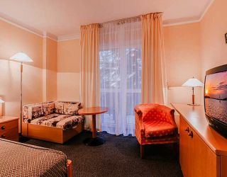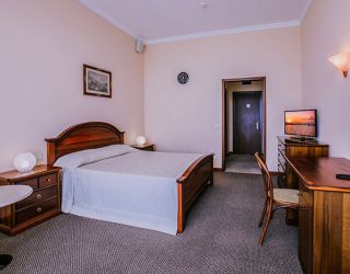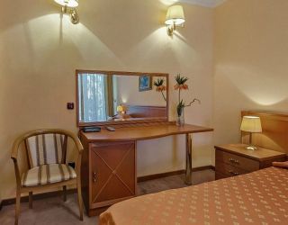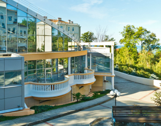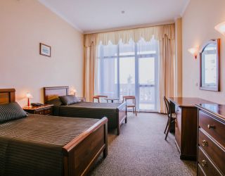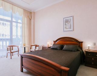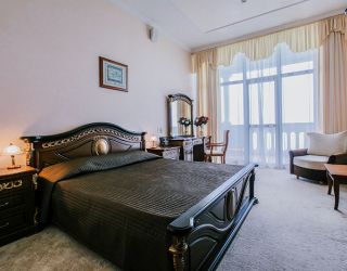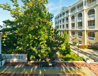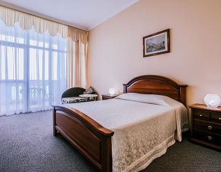 <p "="" style="text-align: justify;"> Санаторий представлен четырьмя корпусами, среди которых три спальных, где размещаются отдыхающие и один административный корпус. Работает санаторий в период с апреля по ноябрь. Общее количество туристов, которые одновременно могут проживать в трех спальных корпусах - 216 человек. Общая площадь территории комплекса составляет 4 гектара. Нет ограничений по возрасту детей в сопровождении взрослых. В пешей доступности, на расстоянии 250 метров находится пляж. После проведенной реконструкции спуска к морю дорога до пляжа составляет 5-10 минут. Необходимый пляжный инвентарь можно арендовать абсолютно бесплатно. <p "="" style="text-align: justify;"> Номерной фонд санатория представлен уютными, комфортабельными и элегантными номерами. Гости имеют возможность выбрать проживание от Стандарта до Апартаментов. Все номера имеют светлую отделку, которая придает помещению простор и легкость.