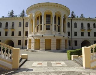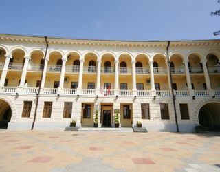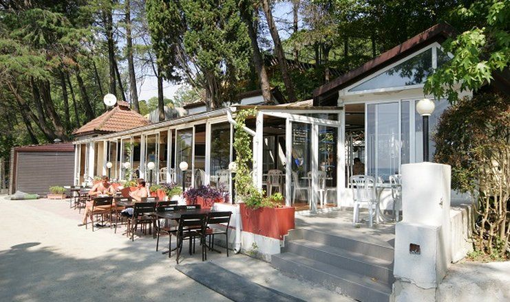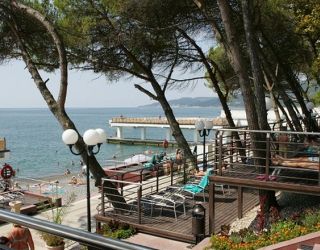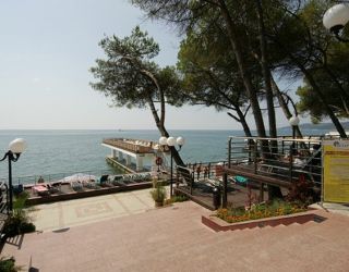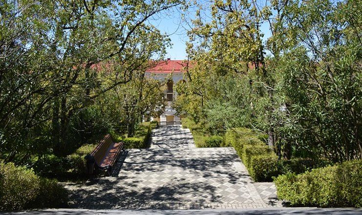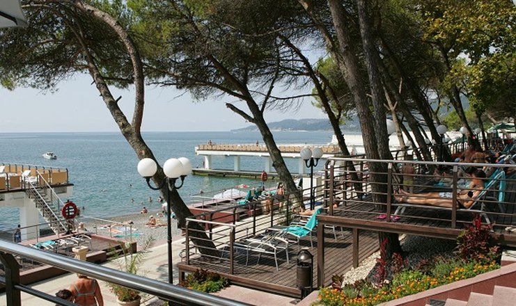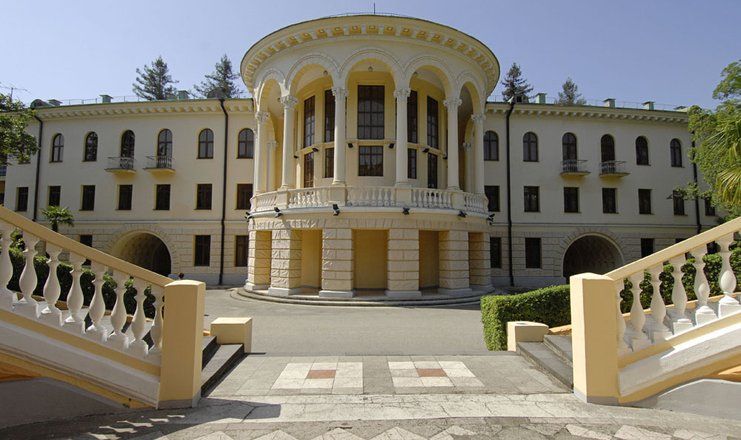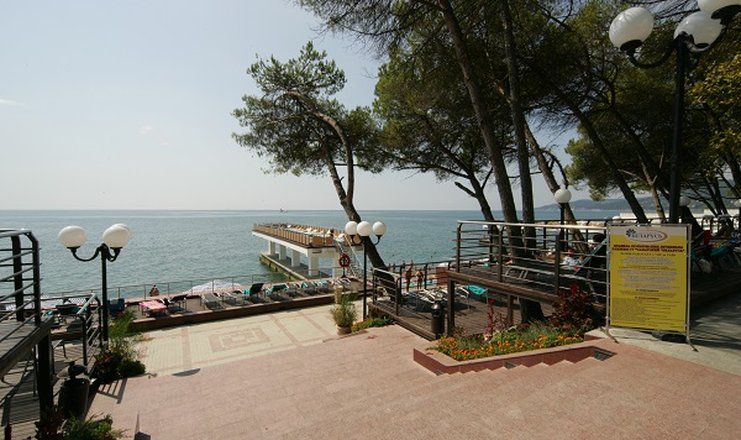 Собственный мелкогалечный пляж санатория по праву считается одним из лучших на побережье: он отлично оборудован, есть душевые и кабинки для переодевания, зонты и шезлонги предоставляются бесплатно, а в высокий сезон работает эскалатор, доставляющий отдыхающих из корпусов прямо на пляж. Расстояние до него от главного корпуса составляет 300 метров, от Приморского — всего 50.