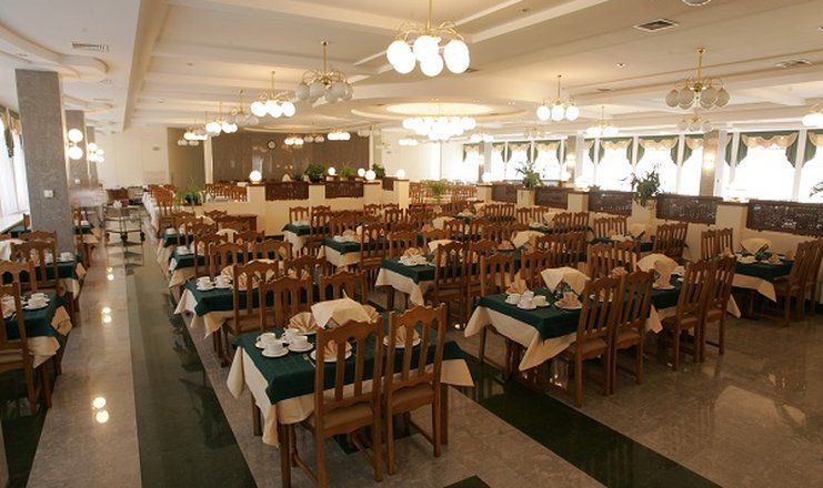 Гостям санатория предоставляется трехразовое питание (система заказа по меню, можно сформировать индивидуальную диету). Вкусные, разнообразные и сытные завтраки, обеды и ужины сервируются в отдельном здании столовой, а выбор блюд позволяет обеспечить полноценное меню даже людям с особыми требованиями к рациону. Работает бар, на пляже — кафе.