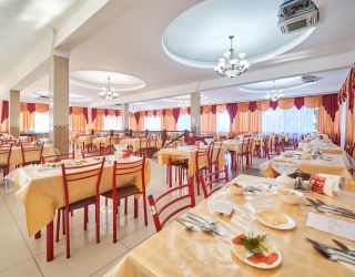Завтраки, обеды и ужины подаются в общей столовой по системе «меню – заказ», кухня европейская.