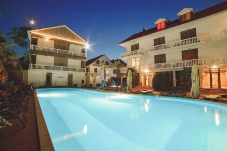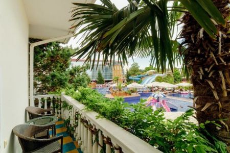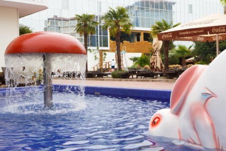 Самолетом до аэропорта г. Сочи, далее на электропоезде до станции Лазаревская, далее на автобусе №79, 156, 157, 158, 170, 72, 73, 74, 77 до остановки «Рынок», пройти 500 им до отеля.