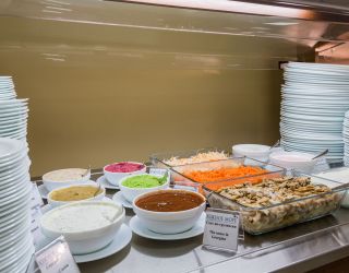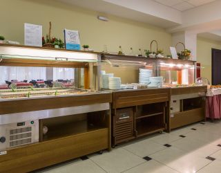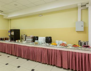 Питание в корпусе Старт 2** имеется свой пищеблок с разнообразным ассортиментом блюд, рассчитанный на единовременный прием 200 человек. Питание - 3-х разовое по системе ≪шведский стол≫, возможна организация питания только с завтраком или полупансионом.