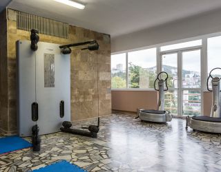- Тренажерный зал: 2 беговые дорожки, велотренажер горизонтальный, велотренажер вертикальный, 2 многофункциональных вибро-тренажера Power Plate, тренажер на все группы мышц TechnoGym Kinesis
