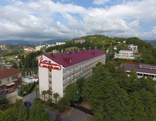 На самолете до аэропорта Адлер, далее на электричке до станции «Сочи», далее на маршрутке №94 до остановки «Институт цветоводства».
