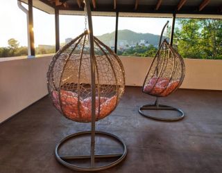 - беседка (оборудованная мангалом, плитой, холодильником, диваны-качалки, столики)
