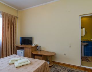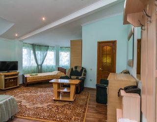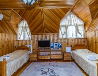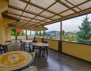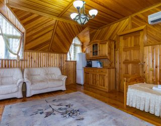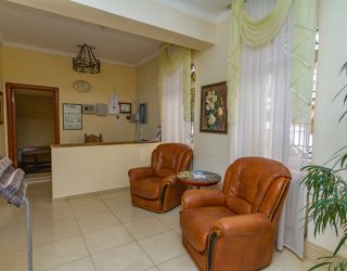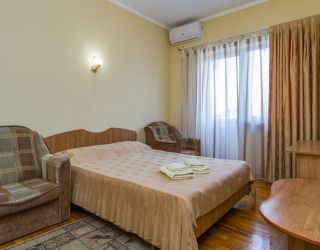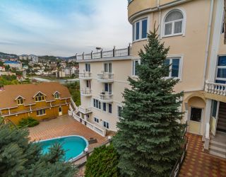 Отель с 30 номерами и высоким качеством сервиса расположен на тридцати сотках приморской территории. С террасы небольшой частной гостиницы открывается грандиозный вид на горы и побережье. Отдыхающие остаются довольны комфортными номерами с балконами и всеми удобствами: ванными комнатами с душевыми кабинами, кондиционерами, холодильниками, телевизорами и бесплатным WI-FI. К услугам проживающих – просторный подогреваемый бассейн с гидромассажем, сауна, бильярдная комната, а также стилизованный под охотничий домик кафе-бар с русской и европейской кухней.