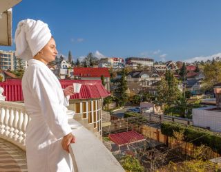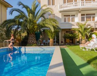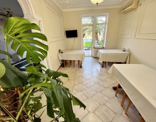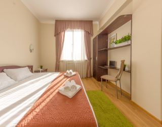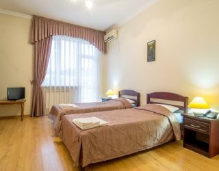 Четырехэтажный корпус дома отдыха (без лифта) возвышается на живописной территории с внутренним двориком и собственным фруктовым садом. Гостей ожидают однокомнатные и двухкомнатные номера, оснащенные санузлом с душем, кондиционером и бытовой техникой: в номерах есть телевизор, холодильник, фен.