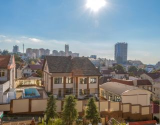 Поездом до ж/д вокзала Сочи, далее на автобусе №17, 30, маршрутке №134, 24, 25, 4, 6, 7 до остановки «Санаторий Радуга», далее пройти 500 м до отеля.