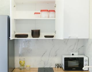 В апартаментах есть все необходимое для комфортного проживания. Есть фен, комплект полотенец для каждого гостя, удобный раскладной диван-кровать. Кухня оборудована электрической плитой, посудомоечной машиной, микроволновой печью, холодильником, есть стиральная машина и чайник.