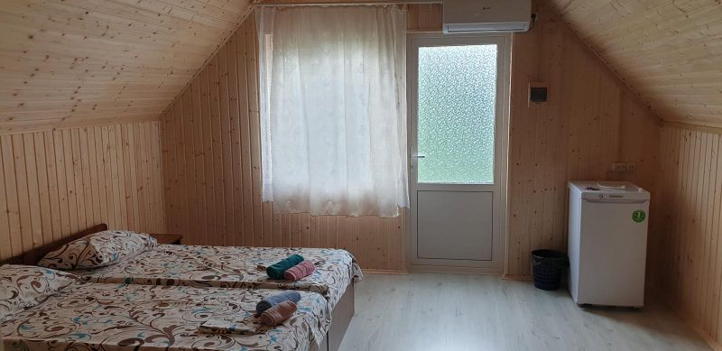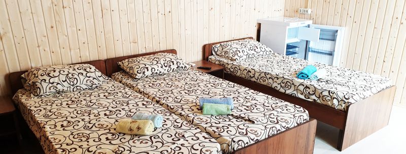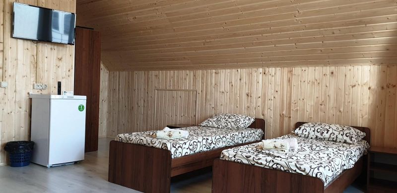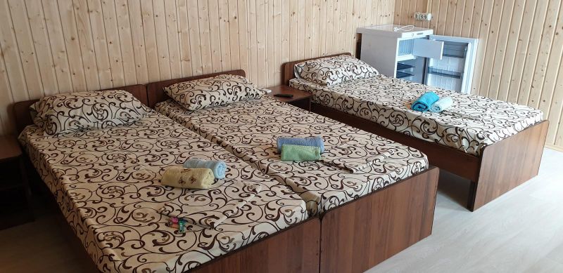 Хорошая база отдыха, номера небольшие, в номере есть душ, туалет, телевизор, холодильник. На территории есть общая кухня для приготовления пищи с несколькими микроволновка и, плитами, чайниками и всей необходимой посудой. Так же есть на территории базы столики и беседки для отдыха, мангальная зона, детская площадка, настольный теннис. Пляж находится недалеко