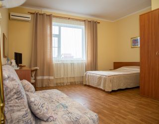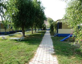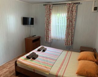 Двухэтажный гостевой дом занимает небольшую закрытую территорию, разместившуюся в 500 метрах от побережья. Гостей ожидают классические двухместные номера, разместиться можно и в отдельном летнем домике. Во всех номерах есть санузел с душем, сплит-система или кондиционер, телевизор и холодильник.
