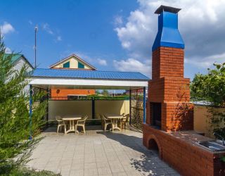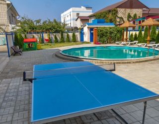 На территории для гостей организована общая кухня, где отдыхающие могут самостоятельно приготовить или разогреть еду, во дворике оборудована мангальная зона, есть беседки. В распоряжении гостей небольшой бассейн, по периметру которого расставлены шезлонги для отдыха. Среди услуг — беспроводной интернет и парковка. Для детей предусмотрена игровая площадка с горками. Песчаный благоустроенный пляж расположен всего в 5 минутах ходьбы.