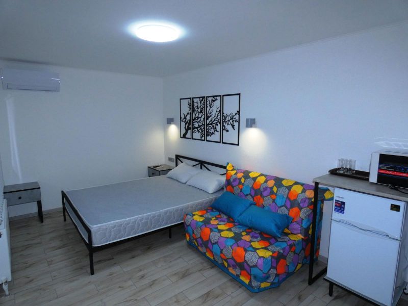 Очень понравилось. Хозяева приятные, отзывчивые, вежливые. До пляжа менее 50метров. В номере на втором этаже не жарко, как обычно бывает на верхних этажах. Кондиционер включали раз в час на 5 минут. Ночью просто с открытым окном. Может нам повезло, но по ночам было тихо ни кто не мешал спать. Машина на стоянке становится легко и других не подпирает, можно выехать и заехать в любой момент