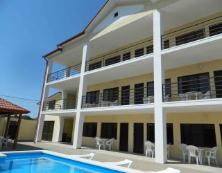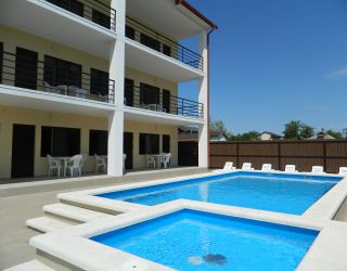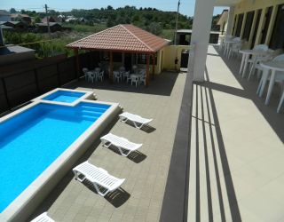 Посетители могут расслабиться на просторной веранде, поплавать в бассейне с гидромассажной зоной и отдохнуть в специально оборудованных беседках с мангалами. Ближайший пляж песчаный, с удобными шезлонгами, защитными навесами и зонтами от солнца, а также раздевалками и широким выбором водных развлечений.