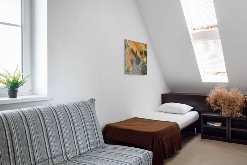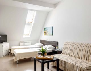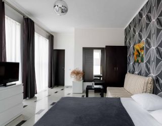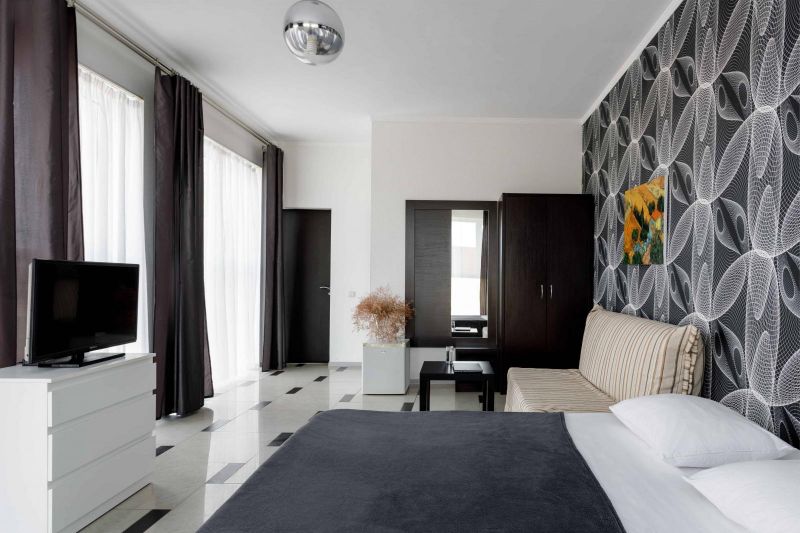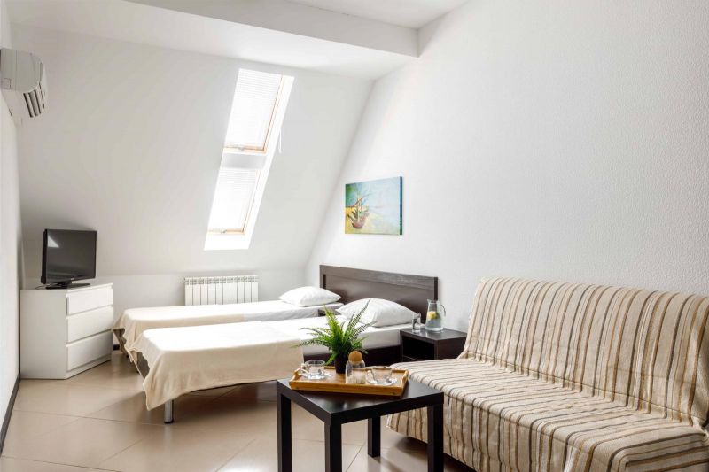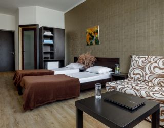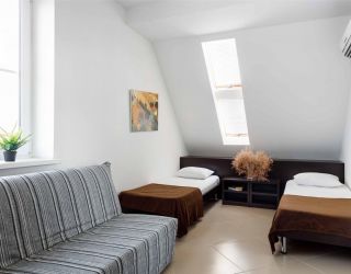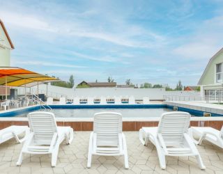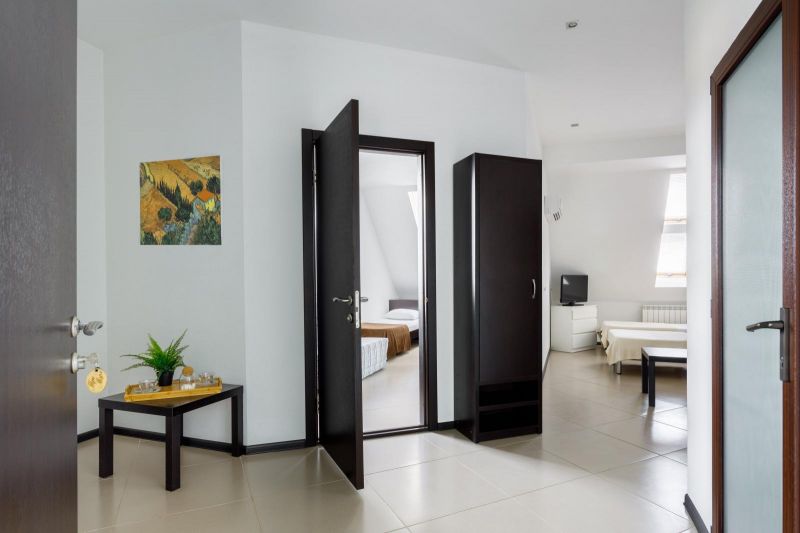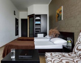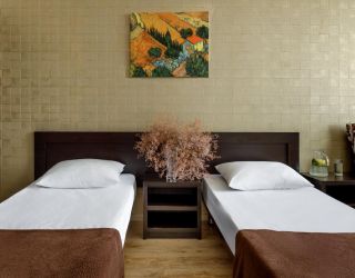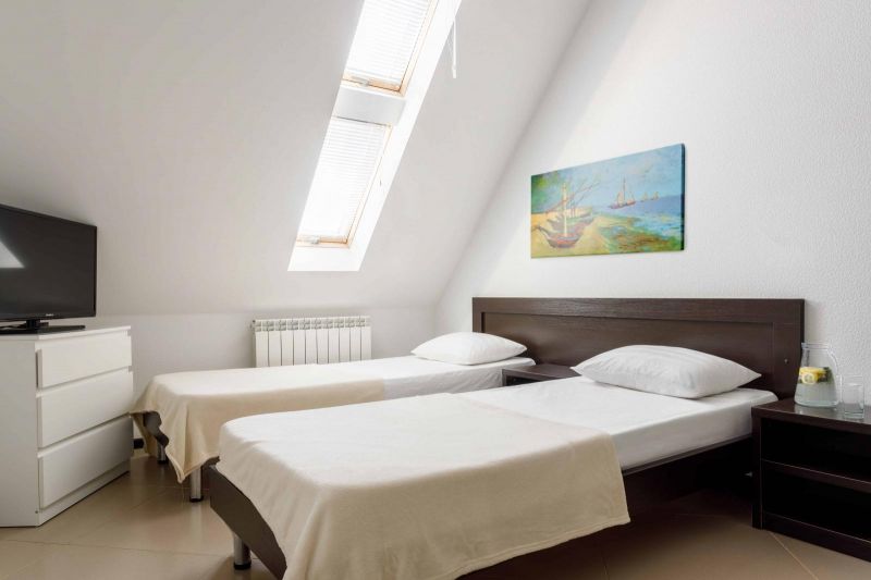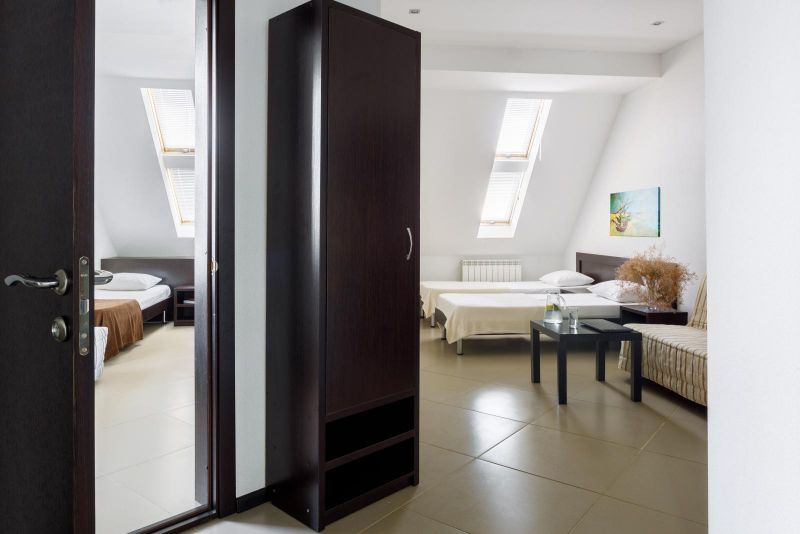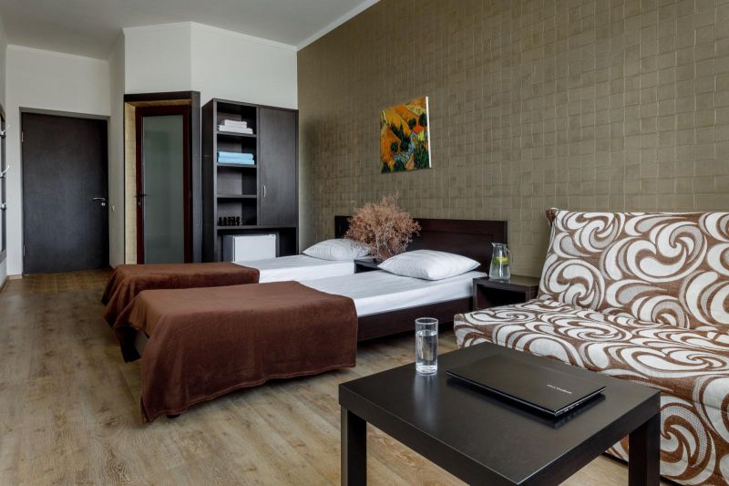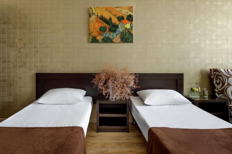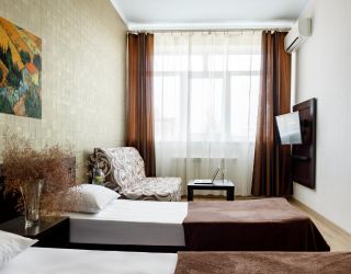 Трехэтажный корпус отеля разместился на благоустроенной закрытой территории. В распоряжении гостей более 40 двух- и четырехместных номеров. В каждом — стильный современный интерьер, большие мягкие кровати, звуконепроницаемые окна и шумоизоляция, все это — залог комфортного и спокойного отдыха. Номера оснащены сплит-системой, есть плазменный телевизор, беспроводной интернет, в ванных комнатах для отдыхающих подготовлены косметические наборы.
