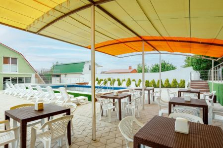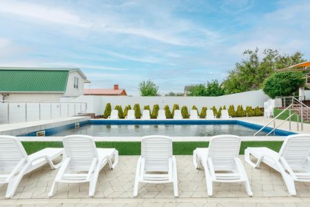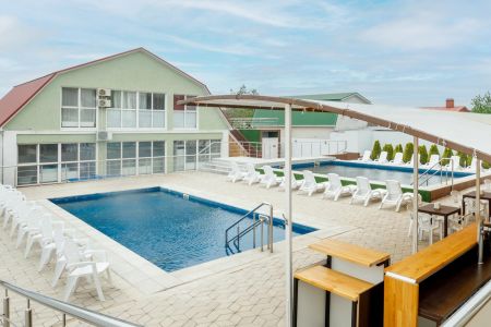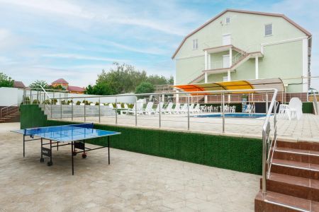 Поездом до ж/д вокзала г. Анапы, далее на электричке «Анапа - Феодосия» до станции «Анапа - Керчь», далее на рейсовом автобусе №102 до остановки «Автостанция Темрюк», далее на рейсовом автобусе №105 до остановки «ул. Космонавтов», далее пройти пешком 350 м до отеля.