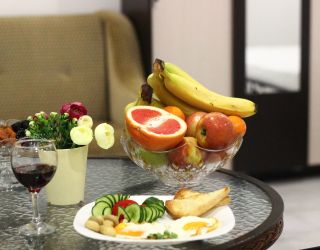 Одна из «изюминок» отеля — очень стильная, ухоженная и отлично обустроенная территория с большим количеством зелени, открытыми террасами для отдыха и смотровыми площадками, с которых открываются впечатляющие виды на величественную Генуэзскую крепость и чарующее Черное море. Здесь обустроена площадка для настольного тенниса и детская площадка, имеется парковка.
