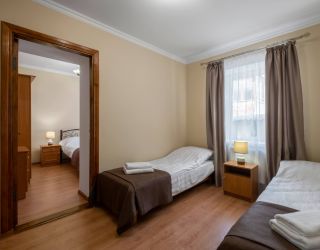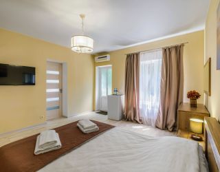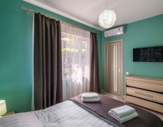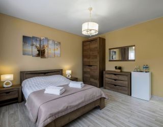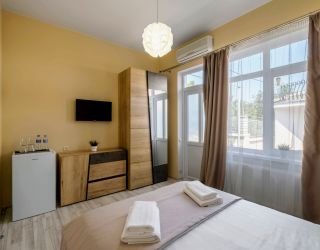 Номерной фонд расположился в 2-этажном здании. В комнатах выполнен современный ремонт в светлых оттенках, установлена удобная мебель для отдыха, есть места для хранения одежды. К услугам гостей телевизор с плоским экраном, кондиционер, мини-холодильник, электрический чайник, Wi-Fi. Санузел индивидуальный, с душем или ванной, полотенцами и туалетными принадлежностями.