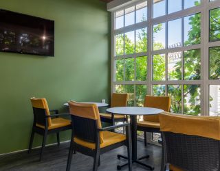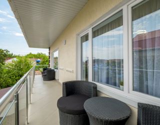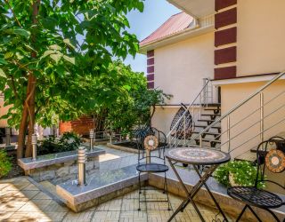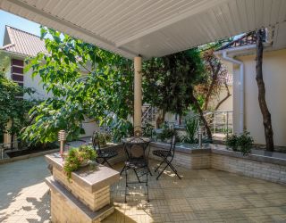 На территории гостевого дома находится кухонная зона в общем доступе, оборудованная необходимой техникой и посудой для самостоятельного приготовления еды. На свежем воздухе есть мангальная зона и места для отдыха. Общественный песчано-галечный пляж расположился в 1,2 километрах от гостиницы. Береговая линия оборудована шезлонгами, зонтами от солнца, навесами, раздевалками, спасательными пунктами.