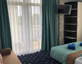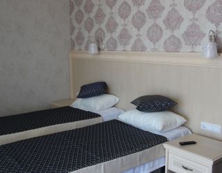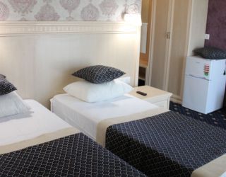 Трехэтажное здание отеля разместилось на закрытой территории площадью 2000 кв.м. Гостям предлагаются просторные двух- и четырехместные номера категорий «Люкс» и «Полулюкс». Во всех номерах имеются кондиционеры, мини-холодильник, комфортабельная мебель, санузел с душевой кабиной.