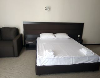 Номерной фонд разного уровня комфорта и вместимости расположился в 6-этажном корпусе с лифтами. Комнаты оснащены необходимой мебелью для комфортного отдыха, есть телевизор со спутниковыми каналами, кондиционер, Wi-Fi, сейф, мини-холодильник, электрический чайник. Санузел оснащен душем, феном, полотенцами, туалетно-косметическими принадлежностями. В некоторых номерах есть кухня для самостоятельного приготовления еды.