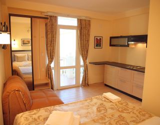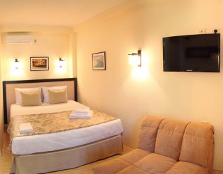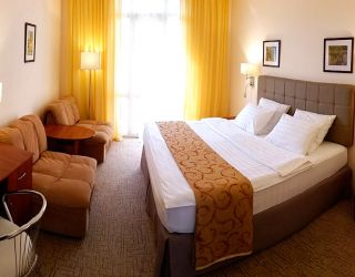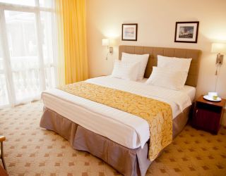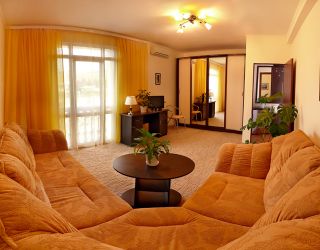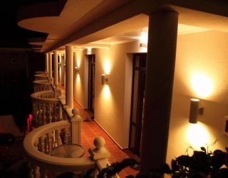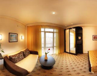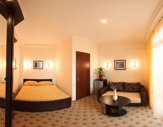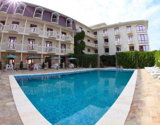 4-х этажный корпус отеля с белоснежными балюстрадами находится на охраняемой территории с благоустроенным внутренним двором. Гостей ожидают комфортабельные уютные номера разной категории, в том числе Люксы и Апартаменты. Все номера оснащены ванной комнатой, кондиционером и укомплектованы бытовой техникой — везде есть плазменный телевизор, фен, электрочайник.