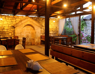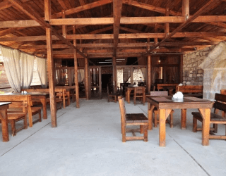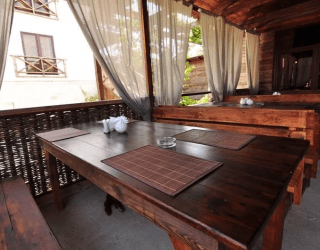 В отеле работает кафе, где гостей ожидают разнообразное блюда кавказской, русской и европейской кухни, блюда, приготовленные на мангале и в большом камине, а также вегетарианское меню.