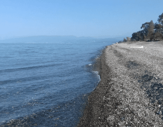 Всего в паре минут ходьбы — песчано-галечный пляж, оснащенный лежаками, зонтами.
