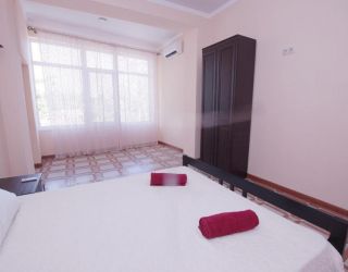Трехэтажный корпус гостевого дома разместился на закрытой территории в 15 минутах ходьбы от железнодорожного вокзала. В распоряжении гостей 7 уютных номеров, в каждом из которых есть санузел с душем и кондиционер. Для отдыхающих организована общая кухня, оснащенная посудой и бытовой техникой, в том числе имеется стиральная машина. В холле установлен телевизор, есть беспроводной интернет, а для автовладельцев предусмотрена охраняемая парковка.