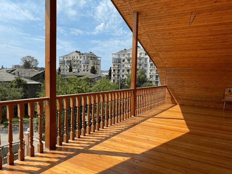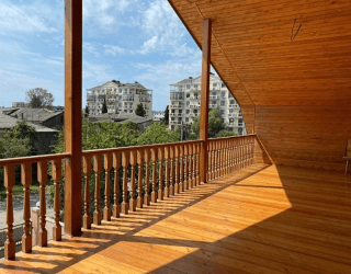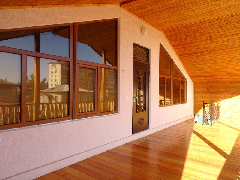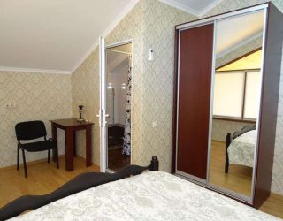 Трехэтажный корпус гостевого дома находится в тихом зеленом квартале города на небольшой закрытой территории. В доме всего лишь 5 номеров, такой камерный жилой фонд несомненный плюс для тихого и комфортного отдыха. Однокомнатные номера оснащены собственный санузлом с душем, в комнатах есть кондиционер, телевизор и холодильник, бесперебойно поступает холодная и горяча вода.
