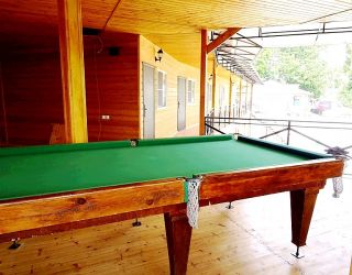На территории для отдыхающих обустроена зона для барбекю с мангалом и беседкой, предусмотрена общая кухня с необходимой бытовой техникой и посудой. Среди услуг — беспроводной интернет и бильярд.