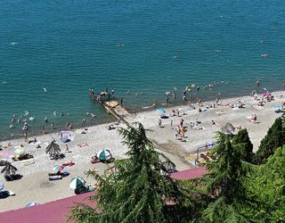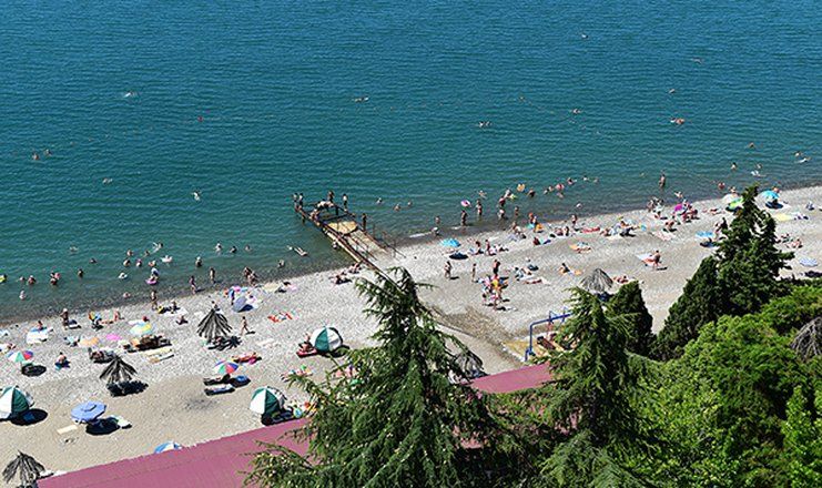 Ближайший к санаторию пляж обустроен навесами и зонтами. На берегу есть спасательный пост и лодочная станция, работают службы проката, предлагаются различные водные аттракционы.