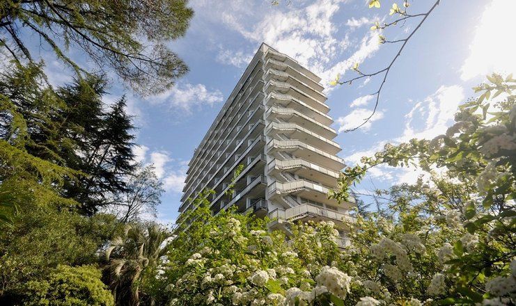 У здравницы есть обширная собственная территория – с красотой тенистых кипарисовых и эвкалиптовых аллей, экзотичных цветников и оригинальных скульптур, на берегу Сухумской бухты, огороженная и охраняемая. В этом своеобразном городке расположен 14-этажный корпус «Бриз» с лифтами, а неподалеку – новый «Генеральский» корпус. Жилой фонд санатория составляют номера категорий «люкс», «полулюкс», «стандарт» и «эконом». Все номера комплекса имею отдельные санузлы с душем и оборудованы набором необходимых бытовой техники: кондиционером (вентилятором), холодильником и телевизором.
