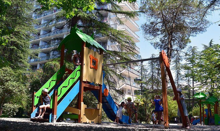 В распоряжении гостей санатория – его парк, беседки, уголки отдыха, массажный кабинет и салон красоты. Для любителей активного отдыха функционируют, площадки для игры в баскетбол и волейбол, теннис и настольный теннис. Для юных гостей здравницы есть прекрасная игровая площадка на свежем воздухе.