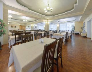 Наряду с санаторными процедурами особое внимание в здравнице уделяется диетическому питанию отдыхающих. 3-разовый тип питания по системе «шведский стол» и по заказной системе меню, тем не менее придерживается диет № 5-10, 15.