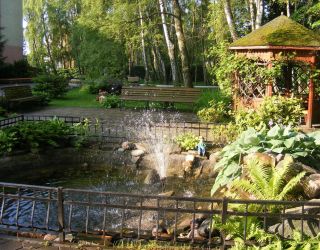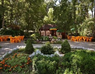 На прилегающей территории (в зеленой зоне), составляющей 2 га, расположилось летнее кафе, прогулочные дорожки, парковка, есть настольный теннис, тренажерный зал, площадки для игры в волейбол или бадминтон, возможен прокат велосипедов.