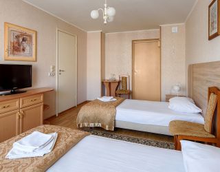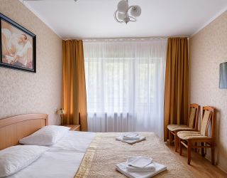 Отель представляет собой три корпуса. Во всех есть лифт. Первый и второй корпус имеют соединение с лечебной базой переходами. А третий находится в 350 метрах от основных. В нем есть столовая.